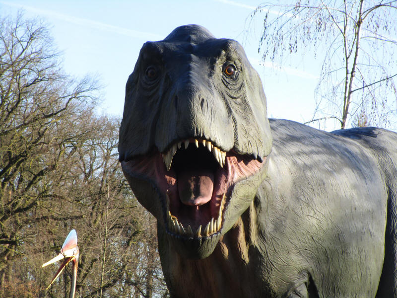 is ongeveer 12 meter lang, 5,5 meter hoog en weegt 6½ ton! Hij heeft een kop van 120 centimeter breed, met tanden erin van 18 centimeter lang!