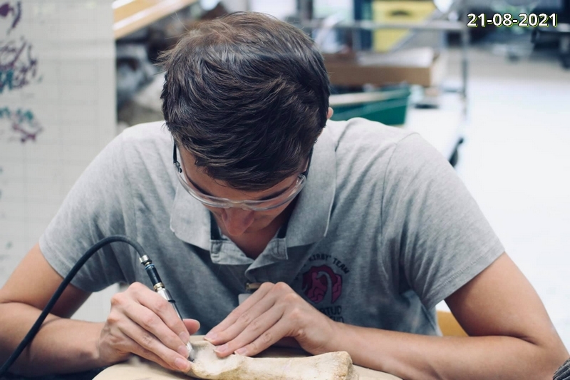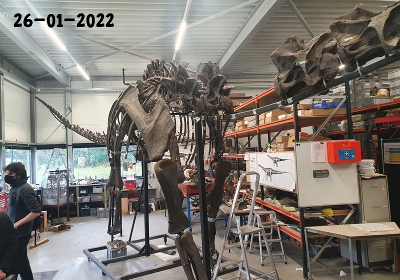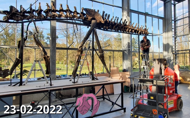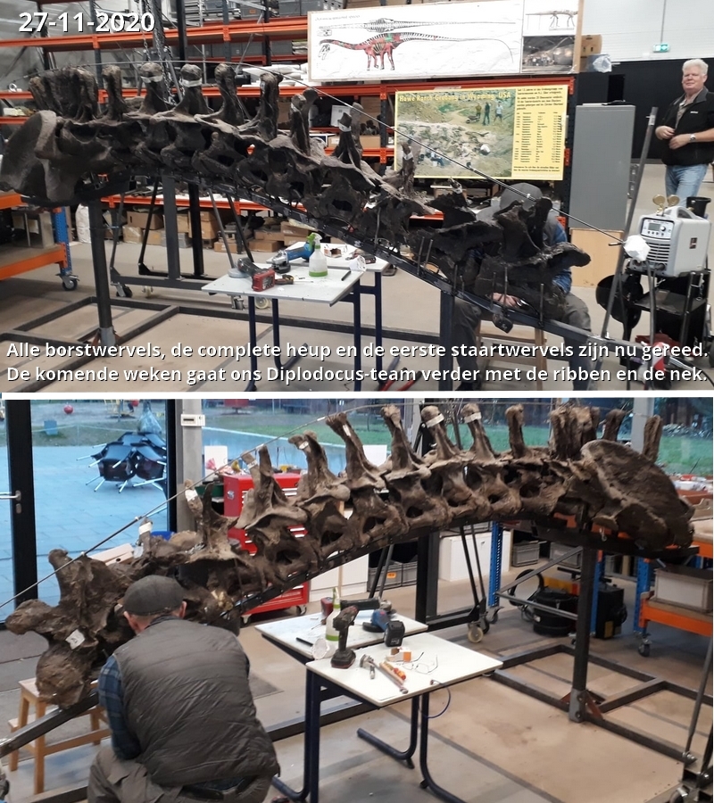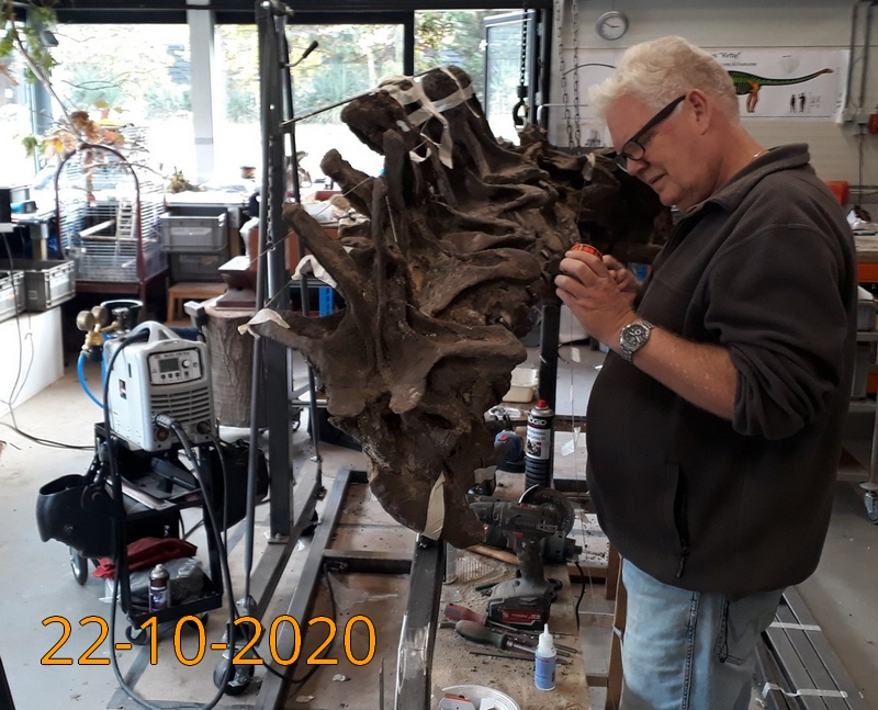 Vandaag 8 September 2020 met het Diplodocus-team weer hard gewerkt aan ons eerste Diplodocus skelet. Het stalen basisframe is gemaakt. De heup is bijna compleet geprepareerd. Van daaruit gaan we verder.