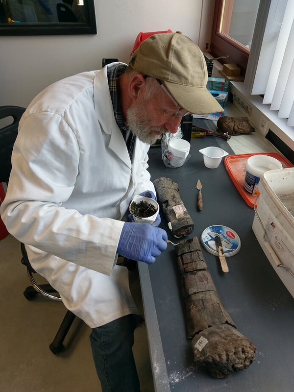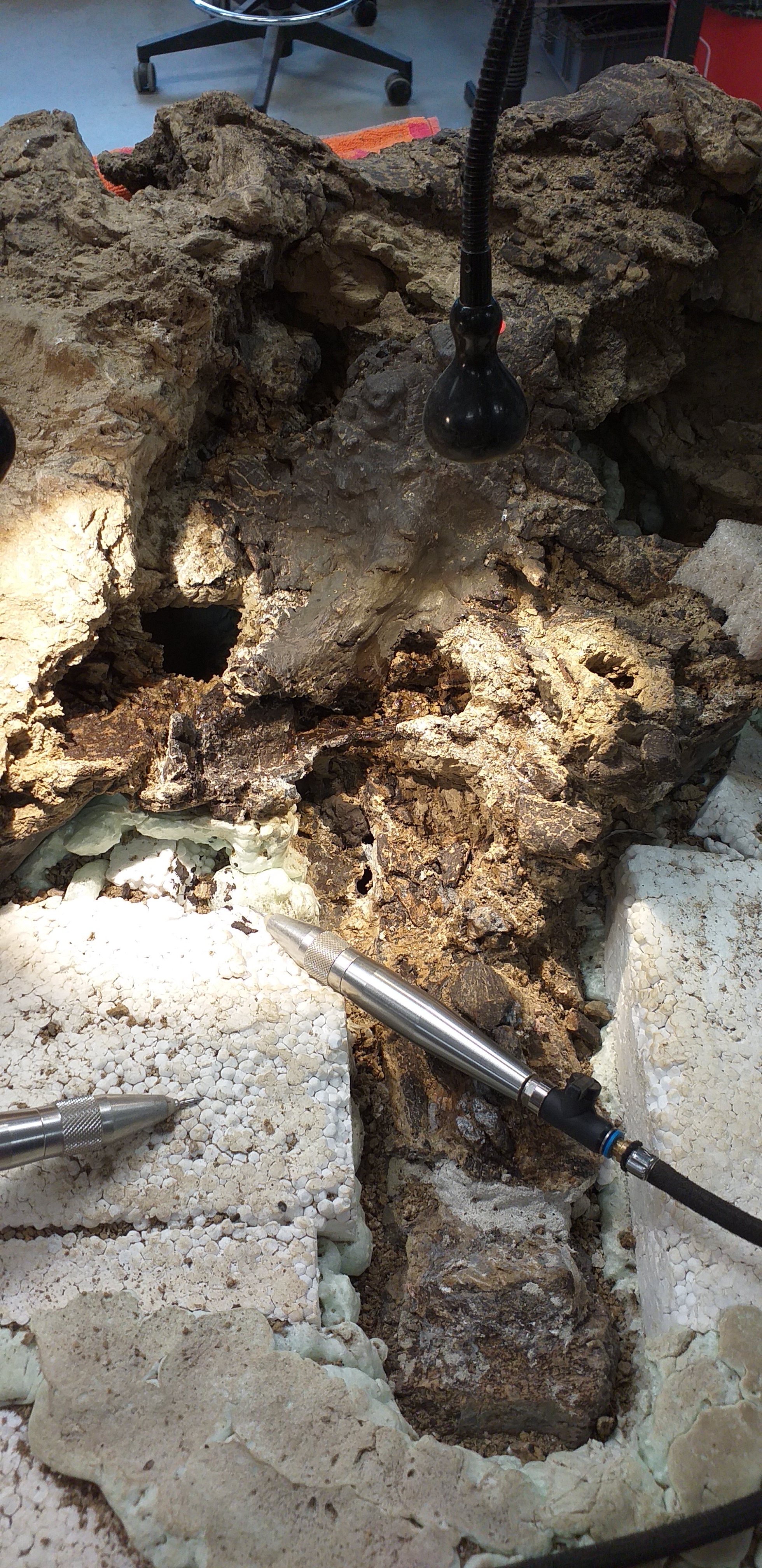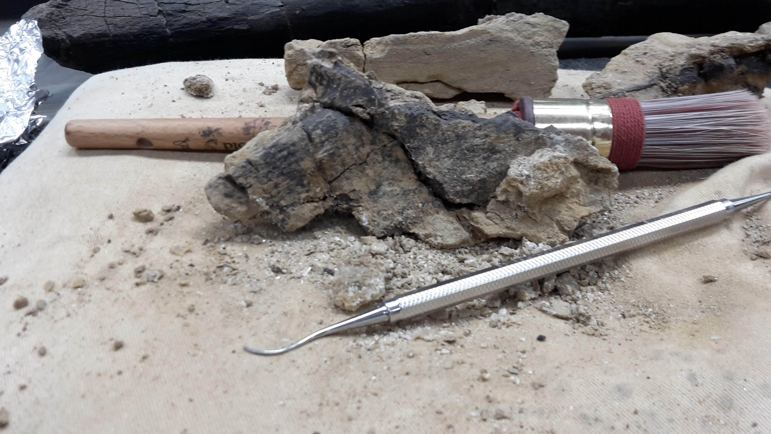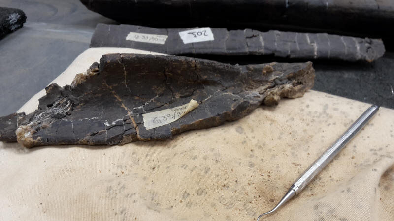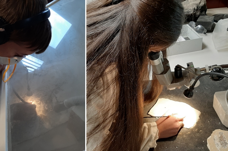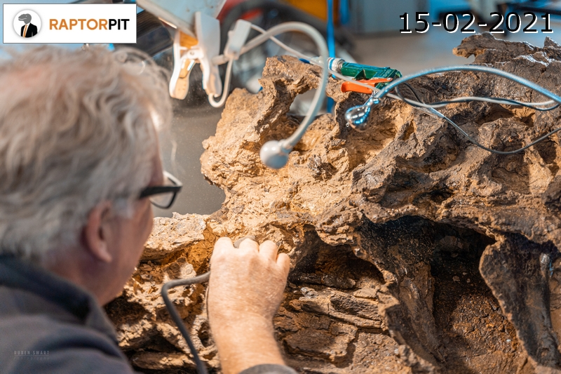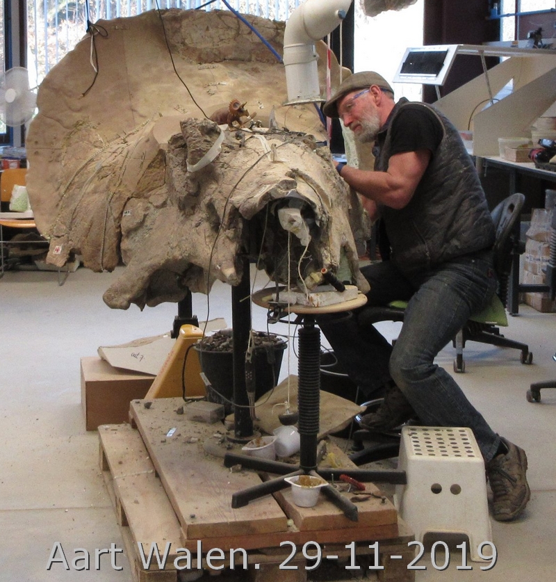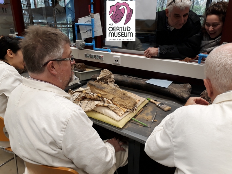 25-08-202. Er wordt weer heel veel en divers werk verzet in de laboratoria van het Oertijdmuseum. Een grote mammoetslagtand wordt geconserveerd, een grote beenvis Lepidotes elvensis uit het Toarcien van Dotternhausen komt langzaam tevoorschijn uit een nodule, diverse dinosaurusbotten uit de USA en Portugal worden vrijgelegd .... kortom ons publiek heeft genoeg te zien en te vragen.