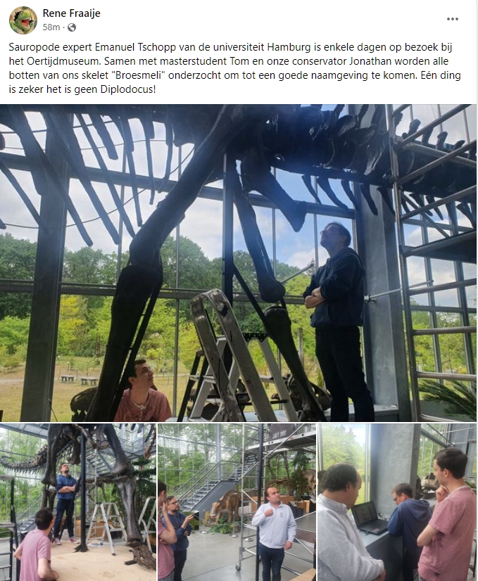 Het Oertijdmuseum is in samenwerking met Creatures & Features begonnen aan het grootste project ooit. Een Diplodocus?? skelet van ca. 20 meter moet uitgeprepareerd en opgesteld worden. Dit met behulp van de gevonden skeletten die bekend staan als ‘Broesmeli’, Twin en Triplo. De vondsten zijn gedaan in de jaren 1990-1996 in Wyoming, USA.